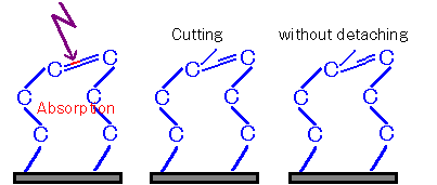 The cleavage of σ bonds generates various fragments. Some molecules undergo recombination on the surface. If the generated fragments are not bound within the sample, desorption occurs.